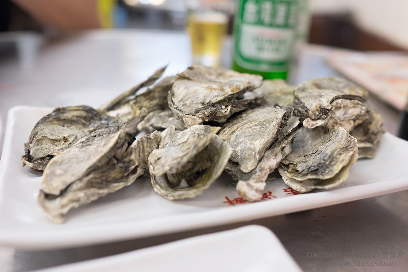 Grilled local Keelung Oysters - bit overcooked. I'm used to the ones in Tainan that are sweeter and vendors taking it off the grill as soon as it pops open so it's still juicy.